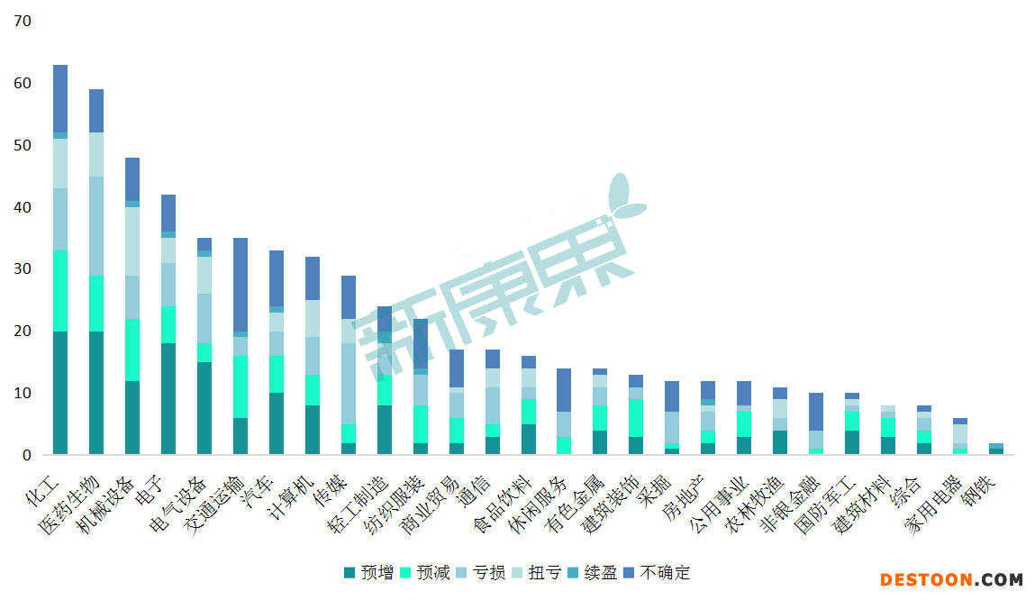 從申萬一級行業(yè)來看,化工、醫(yī)藥生物、機械設(shè)備、電子行業(yè)披露業(yè)績的企業(yè)家數(shù)最多,同樣,這些領(lǐng)域企業(yè)的表現(xiàn)也相對突出。