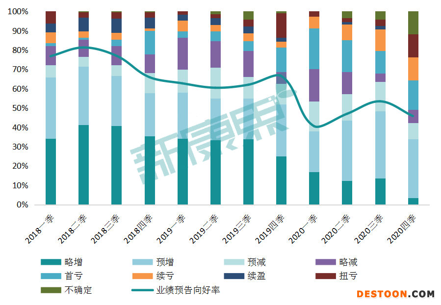 圖5 2018-2020年各季度財報業(yè)績預告情況及向好率變化情況(業(yè)績預告向好包括預增、略增、續(xù)盈及扭虧這四種情況)